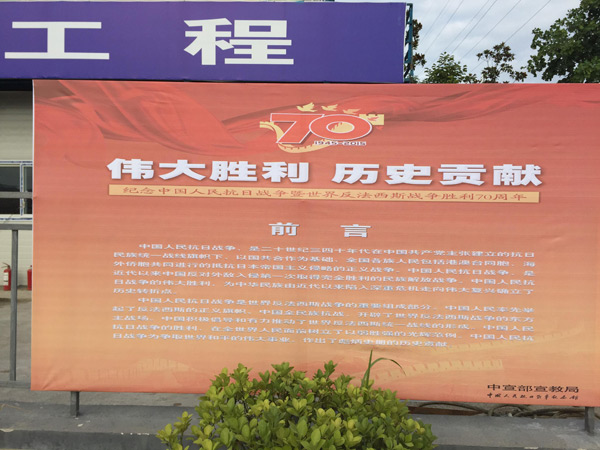 ——金鹏·玫瑰郡项目工地开展“抗日战争暨世界反法西斯战争胜利70周年”宣传展