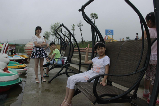 铁艺藤椅,面向水上游乐园,水面一片开阔,心境也一片开阔,哪里会有什么忧愁呢?