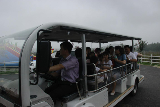 坐着电动车,大家观光游览去咯。