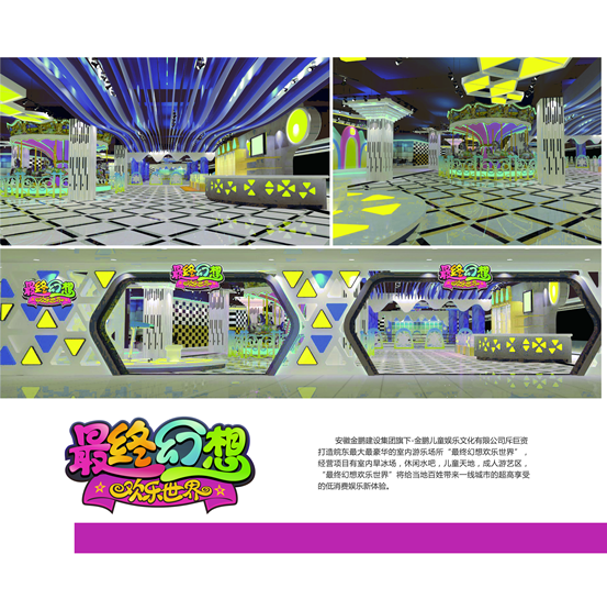 安徽金鹏建设集团旗下的金鹏儿童娱乐文化有限公司,斥巨资打造皖东最大最豪华的室内游乐场所“最终幻想欢乐世界”经营项目有室内旱冰场,休闲水吧,儿童天地、成人游艺区、“最终幻想游乐世界”将给当地百姓带来一线城市的超高享受的低消费娱乐新体验。