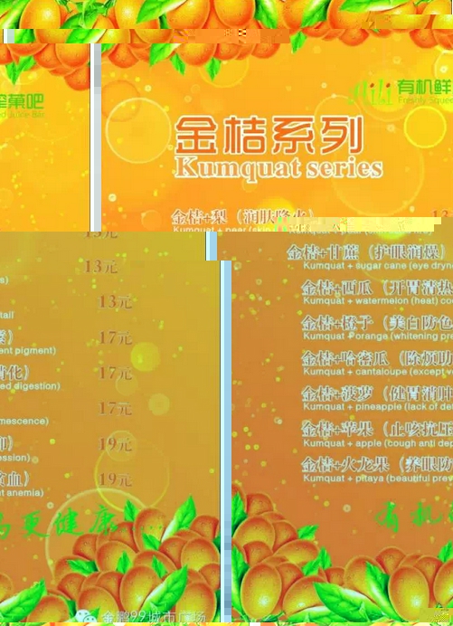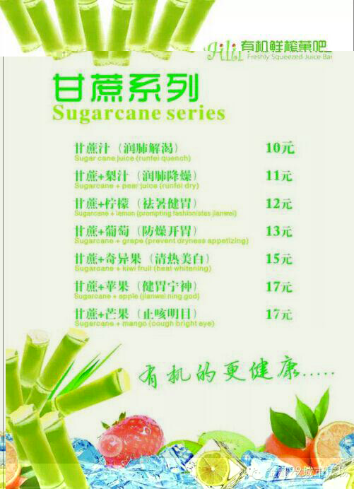 看到这些新鲜的水果,也介绍了这么多,各位吃货是不是都馋涎欲滴、蠢蠢欲动了呢?这么新鲜而又健康的饮品价格是不是很贵呢?下面为各位吃货奉上“菜单”: