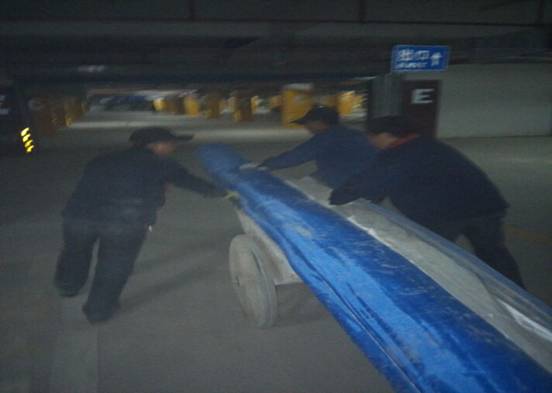 卷帘门单个长约8米,重200多斤,总数量两百多个。一个防火卷帘门需要6个人合作才能搬起,然后还要用小车运到8#楼下方,工作强度很大。为此,我们共出动员工28人,大家卯足了劲,拧成一股绳在不影响日常工作的情况下加班加点,历时三天,终于完美的完成了任务。